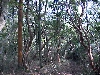 馬酔木の林 14:15 峠より縦走路を右に見送り、南東にのびる斜面をたどる。しばらくすると樹相が変わり、ヒメシャラとアシビが優先する林になる。袴越岳直下のいずれのルートも同じ景観に接する。林床を笹を敷き詰めていることも同様である。ルートが窪地を選んでつけられているので降雨時には、川筋になるためか至る所浮き石と木の根が浮き上がり足運びに気を使う。 |