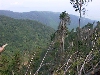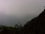 池ノ平遠望 14:50 おかげで、東の方角は眺望が得られる。汗をした垂らせた池ノ平の展望台が黄緑色の一角に望むことが出来る。その上に、箱根駒ヶ岳、金時山のピークが靄の中に黒い陰を作っている。その向こうは見えない。 |