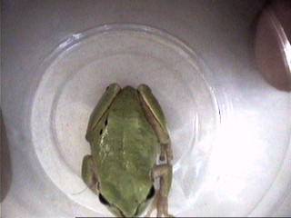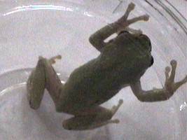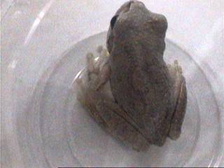 アマガエルは周囲の色(明るさ)によって体色を変化させます。 今回は緑色の個体と茶色の個体を捕獲しました。(撮影後は放しました)