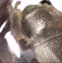 茶色の個体は一晩緑色の容器に入れておいたところ、わずかに緑っぽくなりました。