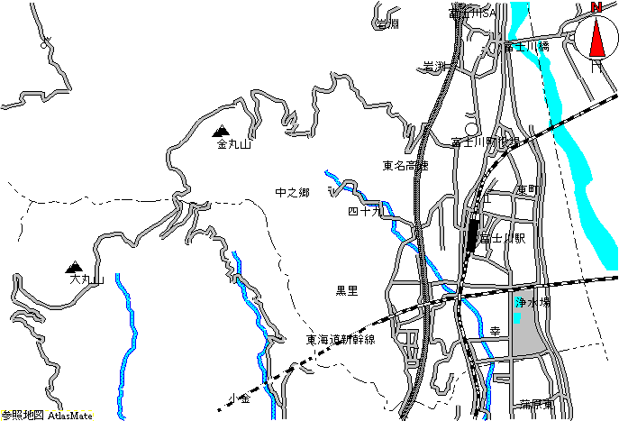 富士川町中央部(町民体育館・木島・小山・富士川サービスエリア)