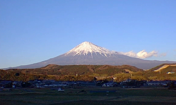 静岡県庵原郡富士川町中野台からの富士山 対岸は富士宮市星山 午後4時頃。