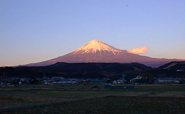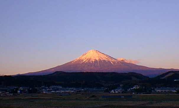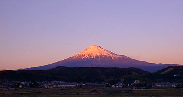 赤富士 この後赤みが薄らいできて、頂上部左上が最後まで赤かった。午後5時20分頃終了。