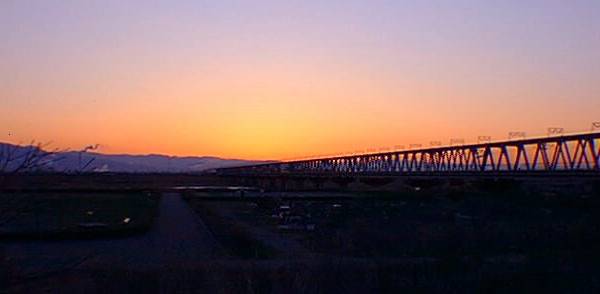 1998年3月18日朝 6:00 快晴 富士川町 富士川堤防より