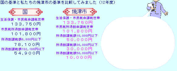 生活保護・市民税非課税世帯については国の基準に合わせていますが、最も該当者が多くなると予想される所得層では国に比べて焼津市の基準が極めて厳しく、実際には20%程度の家庭しか補助金が交付されていません。
