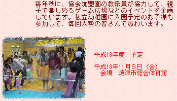 焼津市私立幼稚園PTA連絡協議会は本協会と協力して、私立幼稚園の環境改善のため、また会員相互の研修・資質向上をめざして活動しています。