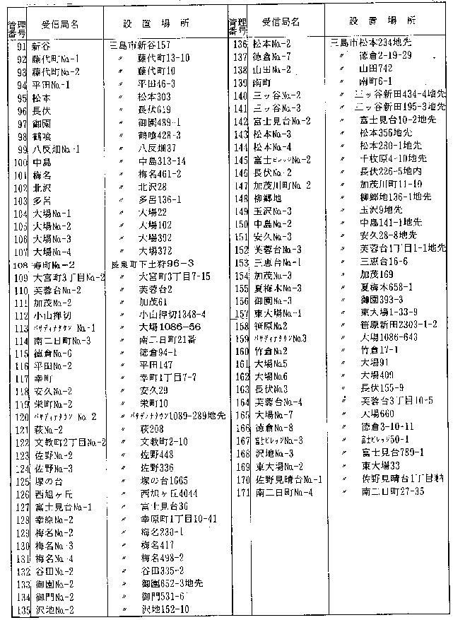 (株)FMみしまかんなみが開局で、いままでの「声の広報」をどうするか・・「廃止」か「継続」かという話になりました。子どもが寝ている。夜勤明けなどで「こえの広報はうるさい」という苦情もけっこうあったのです。(あの放送が始まるとなぜかイヌがいっせいに吠えだしたり・・) それで、いまでは防災上の情報を含め「放送塔による広報は屋外にいる人が対象」「各家庭はボイスQで」という考えに至っています。 でも、これだとラジオ持ってない人もいるし、必ずしもスイッチを入れているかどうかわかりません。 放送塔、ボイスQ、それぞれの手段で複合的に「聞こえる」努力が必要と思います。放送塔のスピーカーはいまのアナログ式からデジタル式に切り替えれば聴こえやすくなるようですが、これには1台あたり約200万円かかるそうです。現在5個所、やっているとのことですが、今後どうするかについてははっきりしません。財政上の問題もありそうです。当面、必要な情報は「何回も繰り返し放送する」などの工夫が必要です。 |