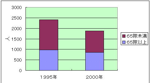(2000年は販売農家のみの数値。農業センサスの形式が変わったため)