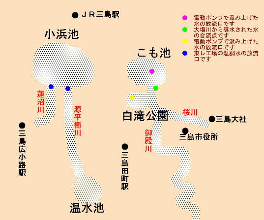 水源の小浜池、こも池、白滝公園、湧き水であふれていたから、