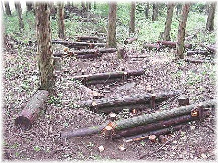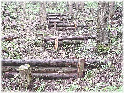 「森の小さなダム」は、降った雨がすぐに沢に流失しないようにするためのもの。