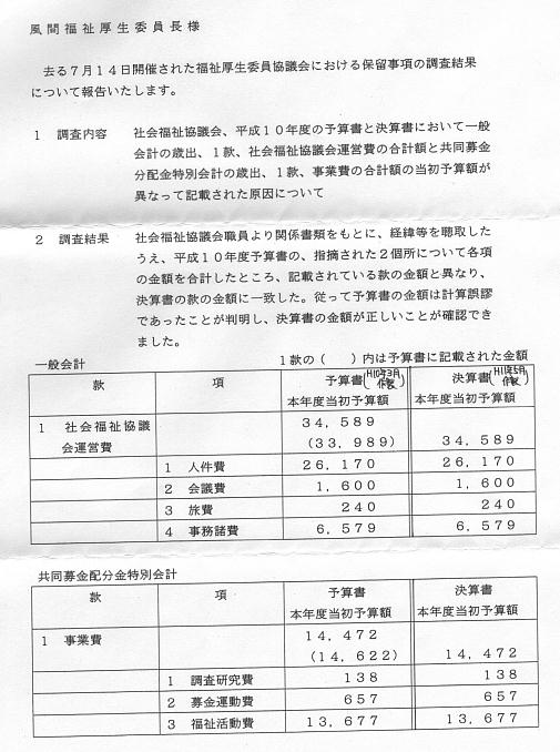 でも、私が調査と報告を求めた内容は、今回の社会福祉協議会についてのすべての問題なんです。