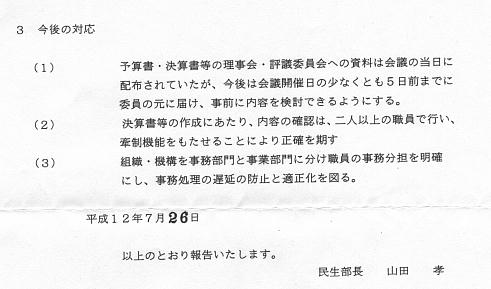 三島市の山田福祉部長から市議会福祉厚生委員長宛、文書回答がきました。